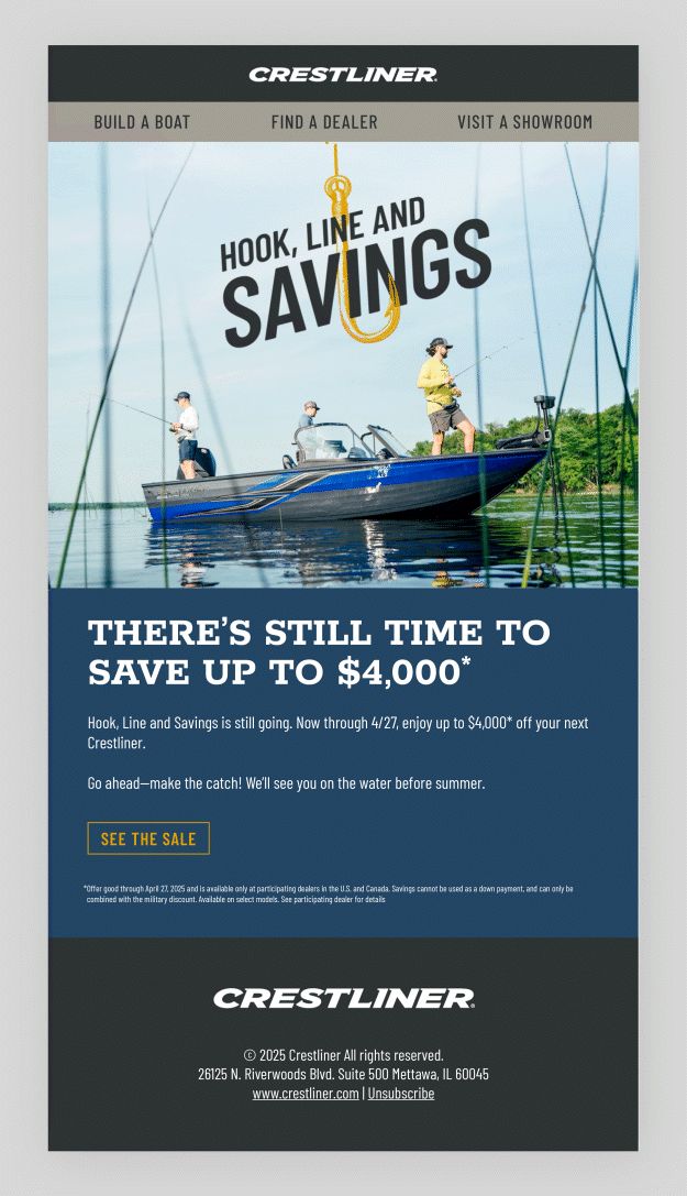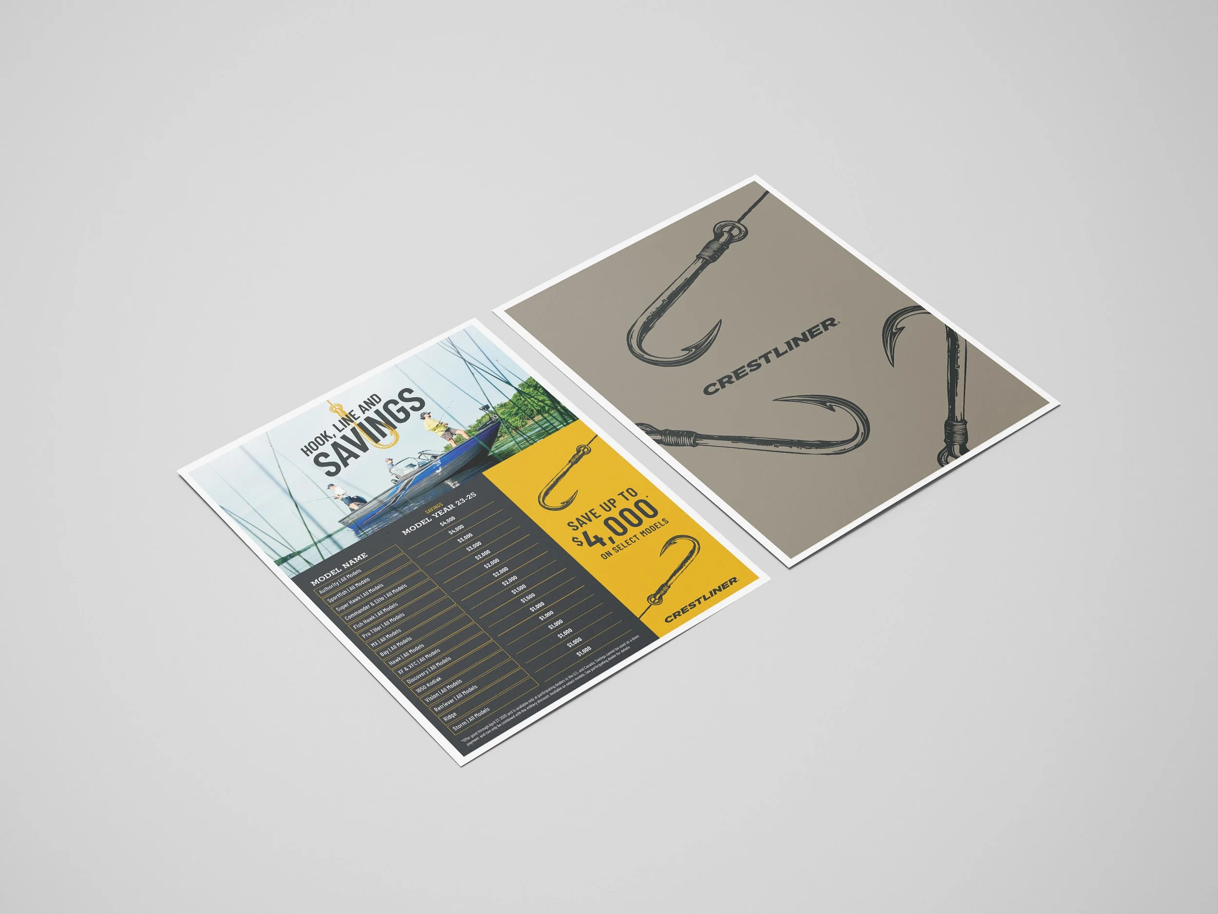 I contributed to the rebrand of Crestliner, an 80-year-old aluminum boat brand known for its durability and outdoor heritage. Our team worked closely with Crestliner to refine and articulate the brand’s mission, values, and core audience. We established a fresh visual identity—developing a new color palette, font pairings, and photoshoot direction that clearly differentiated the brand’s key segments: hunting, fishing, and recreation.